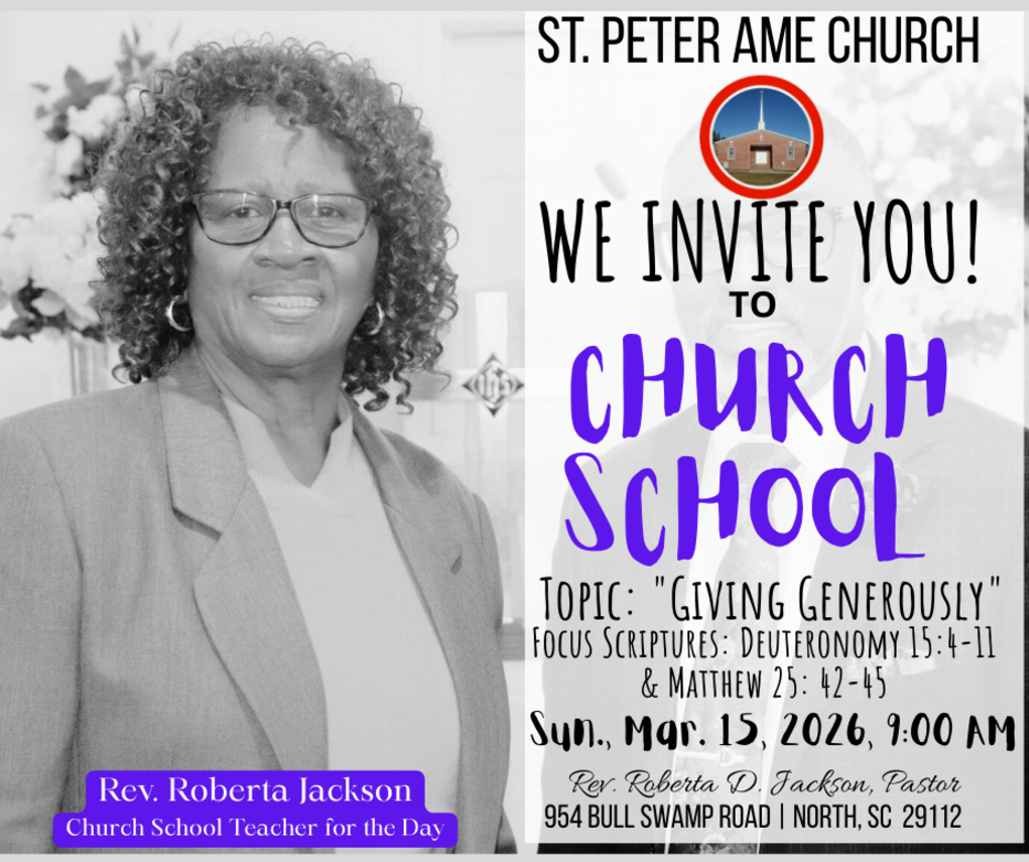 ββββWelcome to St. Peter AME Church, North, SC of the Midlands District of the Central Conference of the Seventh Episcopal District!!